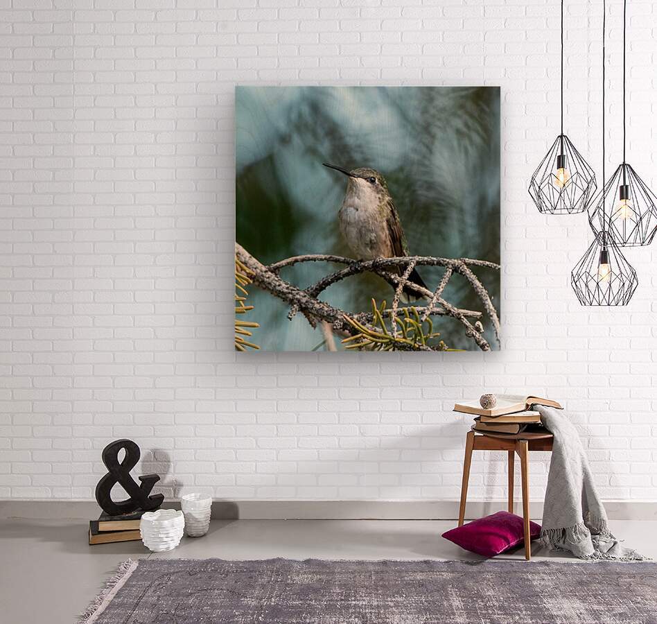 Female Ruby throated Hummingbird 1389  Wood print